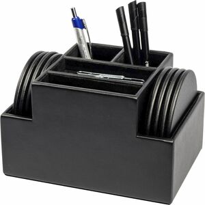 Dacasso Leatherette Round Coaster Set - Round - Black - Leatherette - 1Each